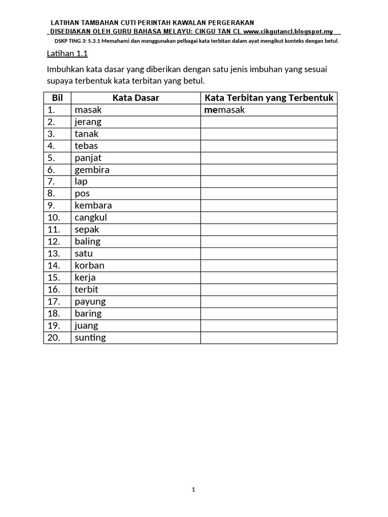 Latihan Tatabahasa Kata Terbitan Flip Ebook Pages 1 50 Anyflip